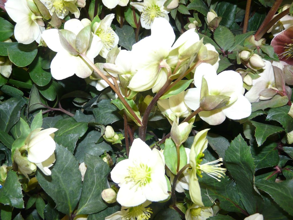 Pour d’autres variétés, comme Helleborus orientalis, par exemple, la floraison blanche, rose, pourpre, verte, et même presque noire, souvent tachetée, dure jusqu’en mai. Pour Helleborus argutifolius, aux fleurs vert clair, on apprécie les fleurs jusqu’en avril.