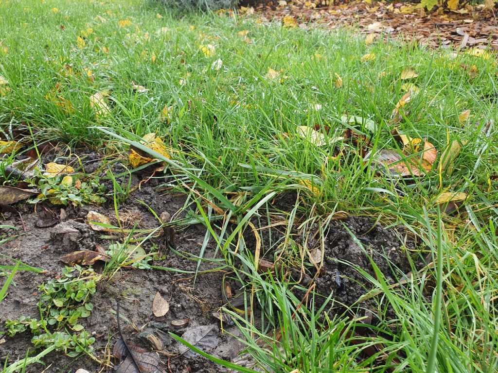 Toujours côté gazon, profitez-en pour reboucher les trous avec un semis de regarnissage et un peu de terreau !