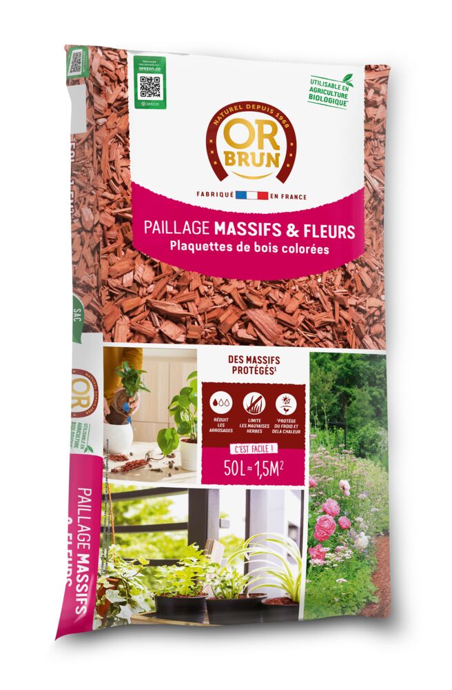 Apportez une touche de couleur à vos massifs avec les copeaux de bois corail Or Brun. Ce paillage décoratif, issu de bois naturel coloré avec des pigments d’origine organique, embellit vos extérieurs tout en assurant une protection efficace du sol.